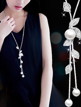damhalsband 1 st bladhänge metalllegering långt halsband chic bladformade kedja smycken halsband (silver guld, en storlek)