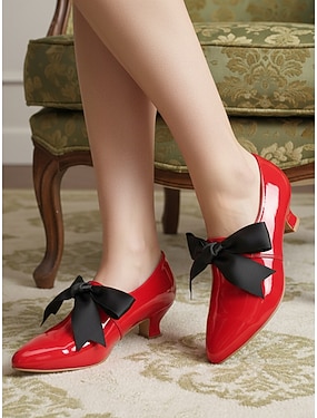 Röda lackskor med rosett – elegant 50-tals vintagestil för formella tillfällen, fester och vardagskläder