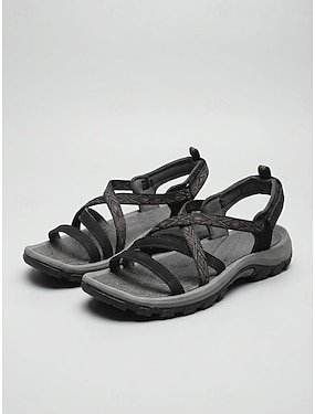 Svarta friluftssandaler för kvinnor – lätta, avslappnade promenadsandaler med justerbara remmar för resor, vandring och sommarbruk