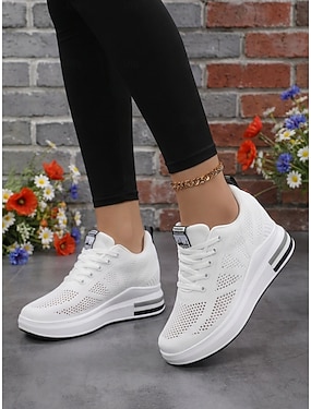 vita andningsbara flyknit-platåsneakers för kvinnor - lätta, dämpade promenadskor, moderna, avslappnade modeskor för löpning, resor, arbete, gym, shopping &dagligt slitage