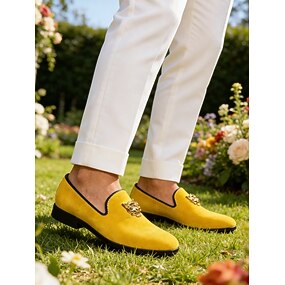 herrgula slip-on-skor med lejonemblem, djärva och trendiga vardagsskor, perfekta för moderiktiga evenemang, avslappnade sammankomster och iögonfallande tillfällen samt bröllop.