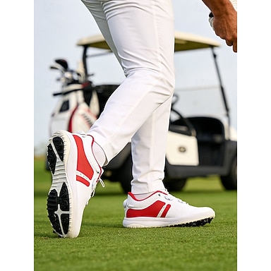 Röda och vita golfskor för män, ventilerande ovandel med greppsula, lätt komfort, perfekt för golfspelare och utomhussporter
