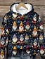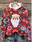 Jul Herr jultomten Vinterkappa Fleece-jacka Kappa Håller värmen Bekväm Ledigt Semester Dagliga kläder Festival Dragkedja Ficka 3D-utskrift Höst Vinter Huva Långärmad Rubinrött Blå Grön