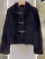 Dam Vinterkappa Fuskpälskappa Håller värmen Bekväm Knappar Mode Ledigt Slät Utomhus Semester Ledigt Utekväll Kort Normal Hög krage Normal Långärmad Ytterkläder Svart Beige Kaffe Höst Vinter