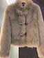 Dam Vinterkappa Fuskpälskappa Håller värmen Bekväm Knappar Aktiv Vintage Mode Ensfärgat Utomhus Semester Fest Ledigt Normal V-hals Normal Långärmad Ytterkläder Aprikos Kaffe Höst Vinter