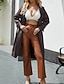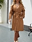 Dam Imitationsläderjacka Trenchcoat Bekväm Knappar Ledigt Slät Utomhus Semester Helgdag Utekväll Lång Nedvikt Normal Långärmad Ytterkläder Svart Vin Kamel Vår Höst