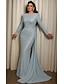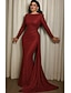 Sjöjungfru / trumpet Svepsläp Balklänningar Kvälls klänningar Balklänning Formell klädsel Elegant Silkig Långärmad Hög hals Formell Bröllop Caper Jersey med Glitter Veckad 2025