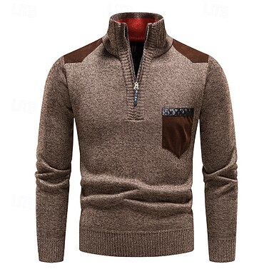 Herr Tröja Aprikos Marinblå Brun Kaffe Ljusgrön Kinakrage Färgblock Lappverk Dagligen Sport & Utomhus Helgdag Polyester Vintage Streetwear Grundläggande Höst vinter Kläder Pull Tröjor Långärmad