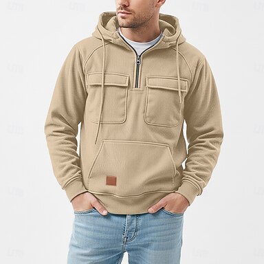 Herr Huvtröja Huvtröja med dragkedja i Quarter Taktisk hoodie Svart Vit Rubinrött Marinblå Kaki Huva Slät Dragkedja Strukturerad Sport & Utomhus Ledigt Dagligen Streetwear Häftig Sportkläder Höst Vår