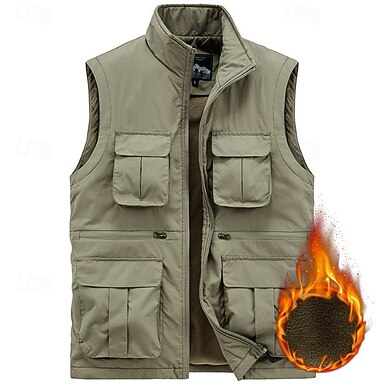 Herr Vandringsväst Vinterkappa Fleeceväst Vinter Höst Utomhus Håller värmen Vest Jakt Fiske Klättring Svart Armégrön Kaki Mörkblå