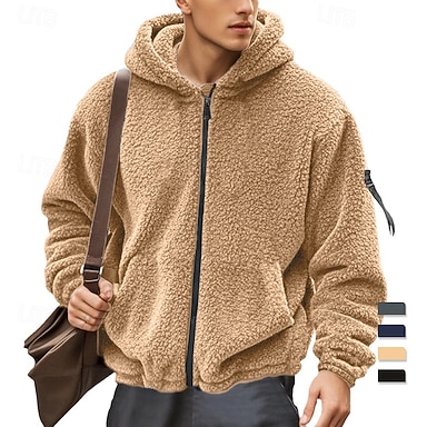 Herr Huvtröja Dragkedja med dragkedja Huvtröja i fleece Sherpa Fleece Hoodie Svart Marinblå Kaki Grå Huva Slät Dragkedja Sport & Utomhus Ledigt Dagligen Streetwear Häftig Sportkläder Höst vinter