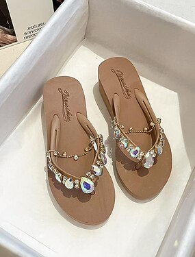 kvinnors rosa strass-utsmyckade kilflip-flops - snygga strandsandaler för sommar och vardagskläder