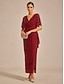 Dam Maxiklänning Sheath Dress Elegant Bröllopsgäst Kvällsfest Cocktailfest Normal Ensfärgat Kortärmad V-hals Rubinrött Sommar Vår Höst
