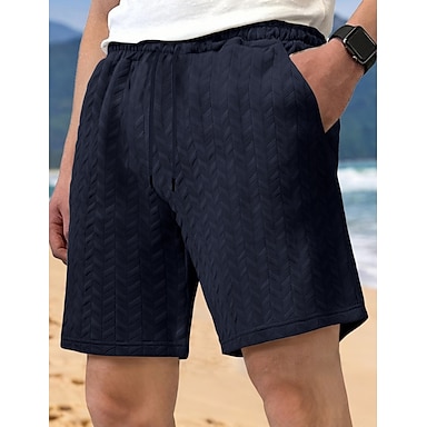 Herr Shorts Casual shorts Jacquard Ficka Elastisk midja Slät Strukturerad Komfort Andningsfunktion Kort Ledigt Utomhus Strand Semester Mode Blå Svart Microelastisk