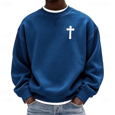 Herr Kors Tröja Långärmad Tröjor Rund hals Sportkläder Klassisk Ledigt Dagligen Alla årstider Blå Svart Kungsblå Kläder Designer 3D-tryck S M L XL 2XL 3XL