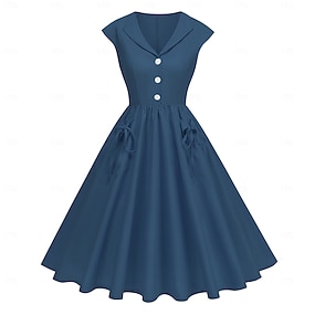 Retro / vintage Femtiotal En linje klänning Rockabilly Swing klänning Holk Rosett Slät V-hals Maskeradkläder Dam Maskerad Cocktailfest Tebjudning Ledigt / vardag Vuxna Klänning Hemkomstklänningar Vår