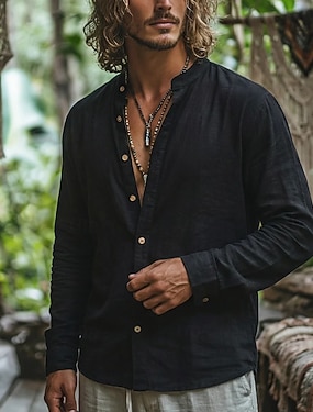 Herr Skjorta Linneskjorta Popover skjorta Sommarskjorta Standkläder Casual skjorta Slät Semester Ledigt Svart Vit Rodnande Rosa Marinblå Långärmad Henley Vår & sommar Kläder