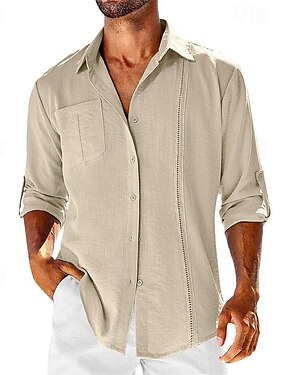 Herr Skjorta linneskjorta Linneskjorta i bomull Sommarskjorta Strandskjorta Slät Hawaiisk Helgdag Svart Vit Marinblå Aprikos Långärmad Kavajslag Vår & Höst Kläder Lappverk