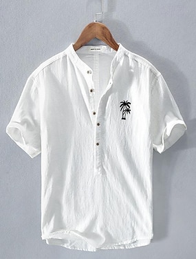 Herr Skjorta linneskjorta Linneskjorta i bomull Vit bomullsskjorta Minimalistisk Aloha skjorta Tröja med kinesisk krage Kokosnötsträd Semester Gata Vit Marinblå Grå Ljusblå Kortärmad Bandkrage Sommar