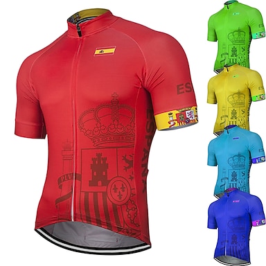 Herr Cykeltröja Spanien Landsflagga Kortärmad Cykel Tröja Överdelar med 3 bakfickor Bergscykling Vägcykling UV-resistent Snabb tork Reflexremsa Bakficka sporter Gul Röd Himmelsblå Kläder
