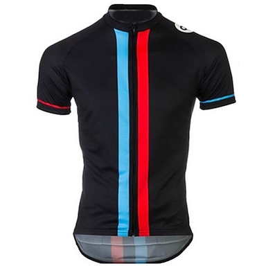 Herr Cykeltröja Ensfärgat Rand Mönstrad Kortärmad Cykel Tröja Överdelar med 3 bakfickor Bergscykling Vägcykling UV-resistent Snabb tork Reflexremsa Bakficka sporter Blå / Vit Svart / Blå Kläder