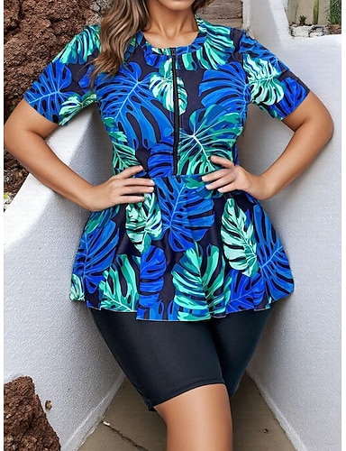 Dam Baddräkt 2 st Baddräkter i plusstorlek Tropisk Dragkedja Ultralätt (UL) UV-skydd Elastisk Kortärmad Badkläder Surfing Snorkelfenor Sommar