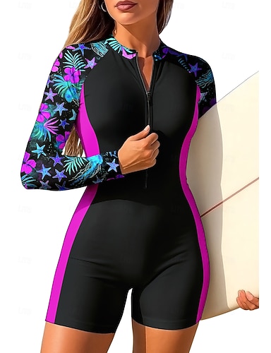 Dam Medium Normal Rash-guards Surfdräkt i ett stycke Baddräkt Blommig Tropisk Färgblockerande Dragkedja med inbyggd BH Avtagbar dyna UV Solskydd UPF50+ Ultralätt (UL) Långärmad Badkläder