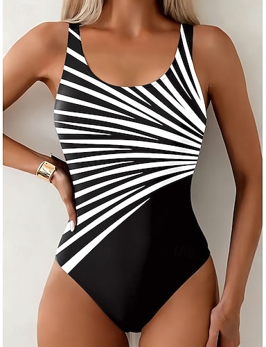 Kvinnors endelad baddräkt formande monokini hög skärning mage kontroll hög midja smal rygglös semester vintage grafisk geometrisk U-hals ärmlös baddräkt