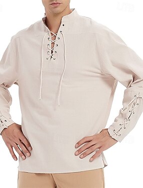 Herr Skjorta Linneskjorta Viking stil Sommarskjorta Standkläder Ensfärgat Semester Gata Vit Orange Grön Ljusblå Långärmad Kraglös Kläder
