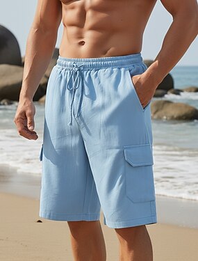 Herr Cargo-shorts Shorts Linne Shorts Sommarshorts Beach Shorts Snörning Elastisk midja Flera fickor Slät Komfort Kort Utomhus Strand Semester Hawaiisk Svart Vit Oelastisk