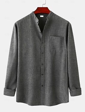 Herr Skjorta linneskjorta Bandkrageskjorta Knapp upp skjorta Slät Semester Helgdag Purpur Kaki Grå Långärmad Bandkrage Sommar Vår & Höst Kläder
