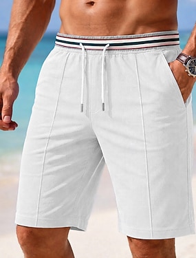 Herr Våffelshorts Shorts Sommarshorts Beach Shorts Snörning Ficka Elastisk midja Färgblock Enfärgat Komfort Andningsfunktion Kort Ledigt Dagligen Strand Semester Mode Svart Vit Oelastisk