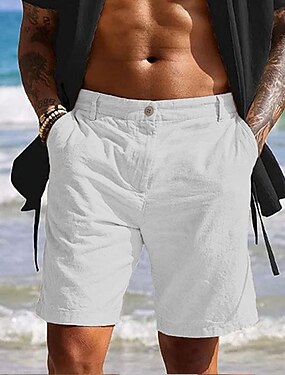 Herr Shorts Linne Shorts Klänning Shorts Sommarshorts Beach Shorts Dragkedja Slät Komfort Andningsfunktion Kort Utomhus Dagligen Streetwear Stylish Ledigt Svart Vit Oelastisk