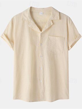 Herr Skjorta Vit bomullsskjorta Casual skjorta Linneskjorta i bomull Slät Semester Gata Vit Beige Kortärmad Rund hals Sommar Kläder Button-Down