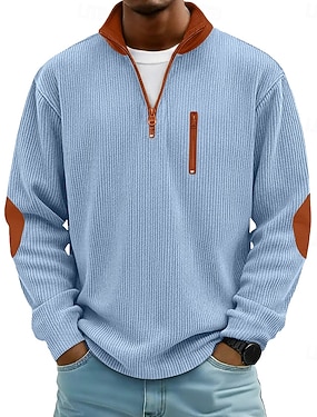 Herr Manchesterskjorta T-tröja Långärmad tröja Långärmad Blixtlås Höst Vinter Färgblock Dagligen Strukturerad Ledigt Dragkedja Förstoringar Ledig Ledigt Utomhus Gata Ljusblå Svart Mörkblå Topp