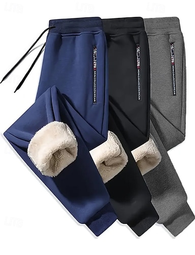 Herr Joggingbyxor Fleecebyxor Långbyxor Casual byxor Träningsbyxor med raka ben Snörning Elastisk midja Flerpack Slät Komfort Varm Fullängd Utomhus Dagligen Utekväll Mode Etnisk Stil Lös passning