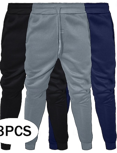 3 st herrbyxor med raka ben, fleecebyxor, vardagsbyxor, dragsko, resår i midjan, flerpack, enfärgad, komfort, lång längd, utomhus, resor, daglig, grundläggande, mode