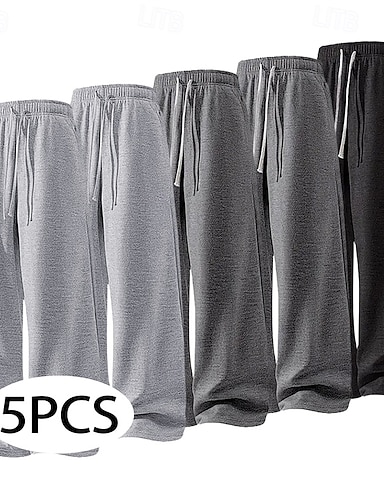 5 st. herrbyxor med raka ben, fleecebyxor, vardagsbyxor, dragsko, resår i midjan, flerpack, enfärgad, komfort, lång längd, utomhus, resor, dagligen, semester, mode