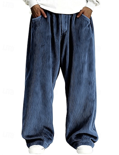 Herr Joggingbyxor Långbyxor Manchesterbyxor Säckiga byxor Träningsbyxor med raka ben Snörning Elastisk midja Ensfärgat Komfort Fullängd Utomhus Dagligen Streetwear Semester Mode Lös passning Svart