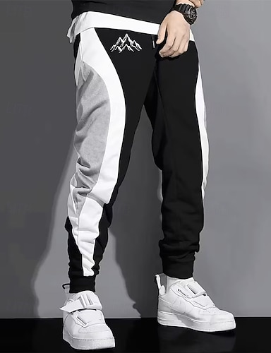 Herr Joggingbyxor Långbyxor Ficka Elastisk midja Snörning Färgblock Komfort Utomhussport Dagligen Mode Ledigt Svart Vit Microelastisk