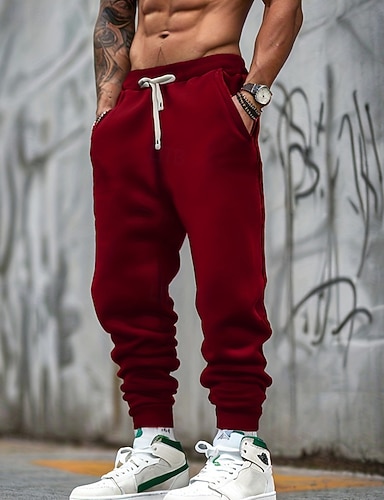 Herr Joggingbyxor Joggare Långbyxor Snörning Ficka Elastisk midja Slät Komfort Utomhussport Dagligen Mode Ledigt Svart Rubinrött Microelastisk