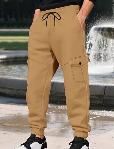Herr Joggingbyxor Fleecebyxor Joggare Långbyxor Vinterbyxor Snörning Ficka Elastisk midja Slät Komfort Varm Utomhussport Dagligen Mode Ledigt Svart Kaki Microelastisk