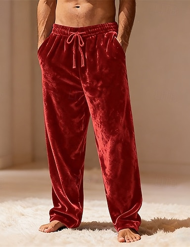 Herr Träningsbyxor med raka ben Sammetsbyxor Snörning Ficka Elastisk midja Slät Komfort Varm Dagligen Ledigt Blå Svart Microelastisk