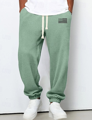 Herr Joggingbyxor Joggare Långbyxor Snörning Ficka Elastisk midja Landsflagga Komfort Andningsfunktion Dagligen Utomhus Amerikas 250-årsjubileum Semester Mode Blå Svart Microelastisk