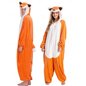 Kigurumi-pyjamas Gruppdräkt Onesie kostym Djurmönstrad röd räv Varm Bekväm Huva Fleece Vuxna Herr Dam Unisex Halloween Karnival Fest Prestanda Hemma kläder Klä ut