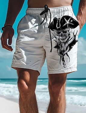 Herr Dödskalle Pirat Shorts Sommarshorts Beach Shorts Medium Midja Hawaiisk Ledigt Utomhus Helgdag Utekväll Snörning Elastisk midja Mönster Designer Kläder