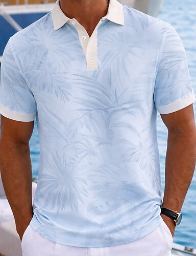Herr Växter Hawaiian pikétröjor Kortärmad Polotröjor Skjortor med krage Ledigt Fritids- Dagliga kläder Semesterkläder 3D-utskrift Knappar Nättyg som andas Vår & sommar Blå Purpur Grön