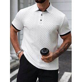 Herr Pikétröjor Strukturerad Ledigt Företag Ribbstickad polokrage Klassisk Kortärmad Mode Grundläggande Ensfärgat Jacquard Knappar Sommar Vår Vår & Höst Normal Vit Beige Pikétröjor