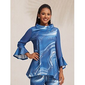 Dam Casual skjorta Abstrakt konst Ledigt Klocka Himmelsblå Elegant bohemliv Semester Rund hals Sommar Vår