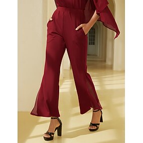 dambyxor stretchigt chiffongtyg transparenta paneler utsvängda ben resår i midjan elegant bekväm dagligt arbete höst